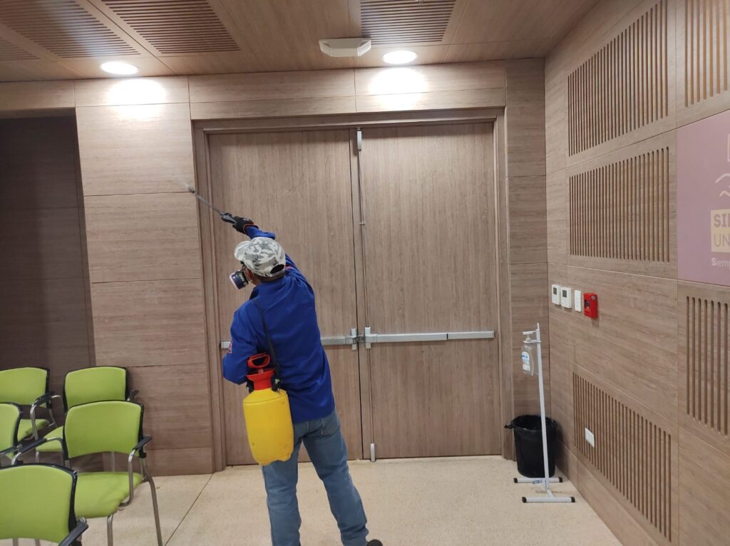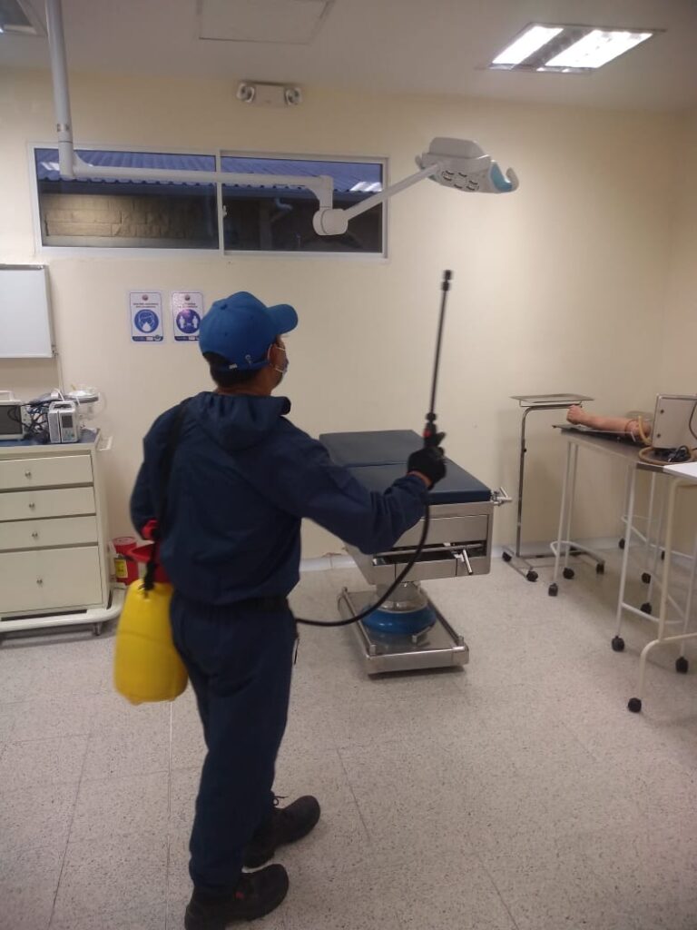 Desinfección profunda de instalaciones con equipos especializados y productos de amplio espectro.